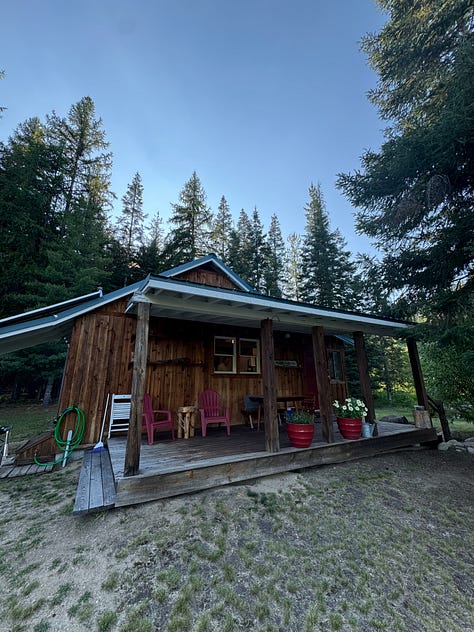 In July, I stayed in an old Forest Service cabin built by the CCC in the panhandle of Idaho. My friend Sarah, a writer, owns the cabin with her husband, Jim. They provided the stay as part of a silent auction supporting Elk River Writers’ Workshop (yes, I’m obsessed!). Sarah and Jim hosted us for a lovely dinner; she and I talked about our writing over coffee in a quaint bakery & diner in Priest River. As with the poem I shared in last month’s Substack, I read this poem at Elk River in August, keeping within the three-minute limit for our evening student readings.